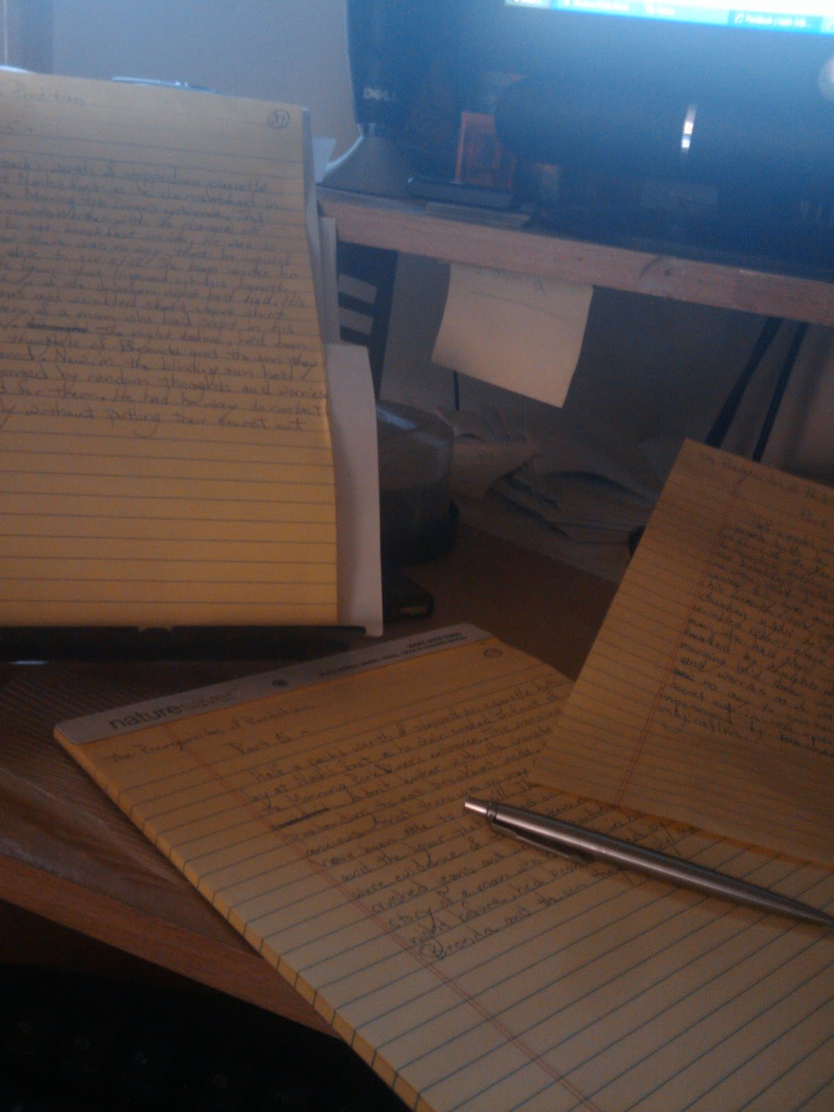 The biggest flaw in my creative process as an author is self-criticism. I’ll spend days re-writing a single, hand-written page. I’m always satisfied with the end result but the same could be accomplished by letting the work flow and then revisiting it at a later date. This was an important obstacle for me to overcome, just to become a more efficient author. I usually can’t keep up with the stories that I dream up because it just takes me too long to write them. I think I’ve taken the 1st step to having better time-management skills when transferring my thoughts to paper. (It does get confusing at times because I’m not completely sane.) But, if I plan to be what I know I can be, consistency is one of the keys to achieving that.